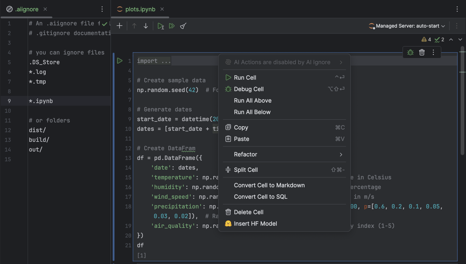 Обнаруженные проблемы можно посмотреть и с помощью Fix with AI сгенерировать код для их автоматического устранения в новой ячейке.