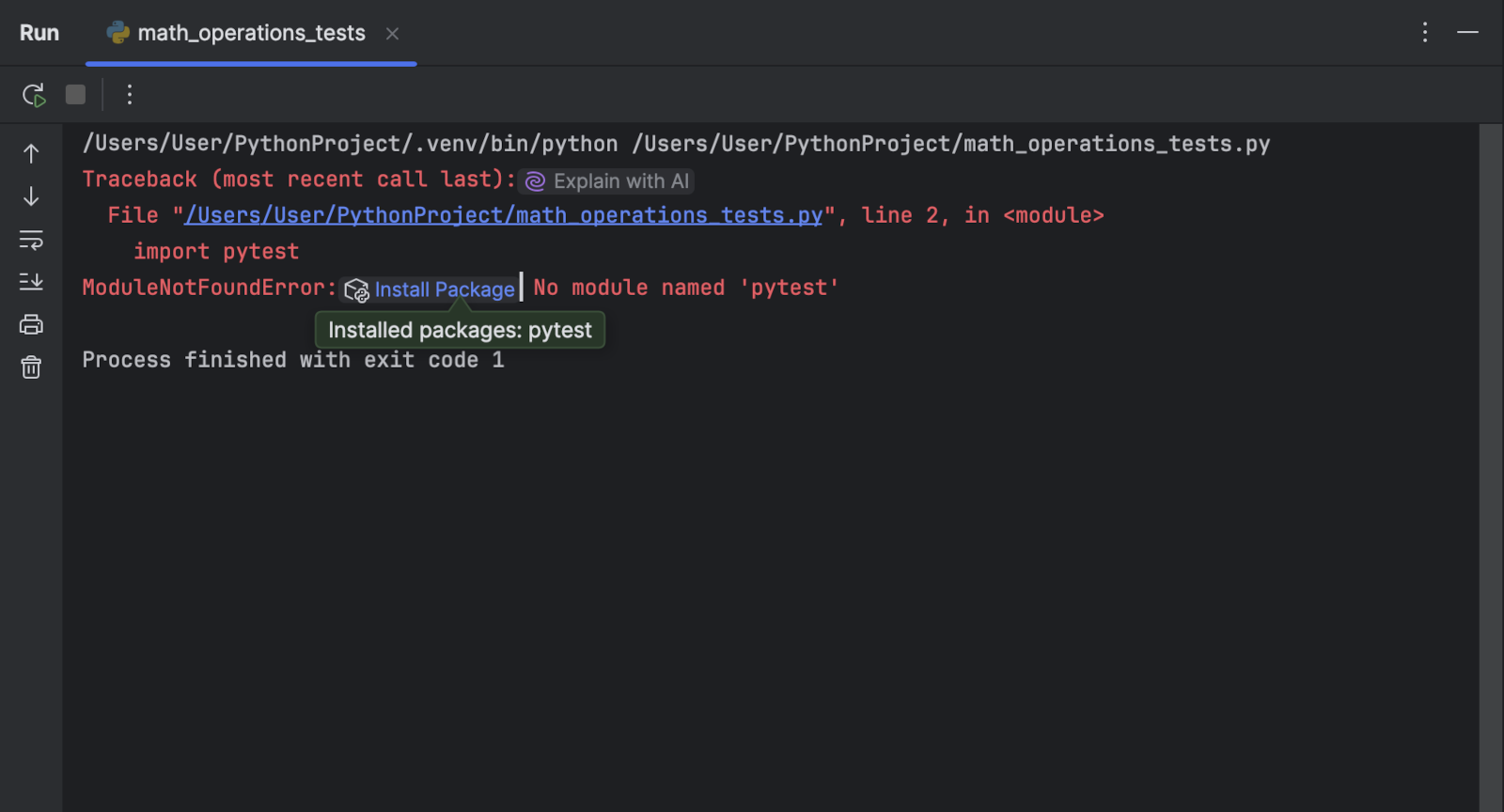 Теперь в PyCharm есть отдельное окно Process Output для Python, где отображаются все команды, выполненные IDE, и полная информация о потоках входных и выходных данных, а также ошибок.