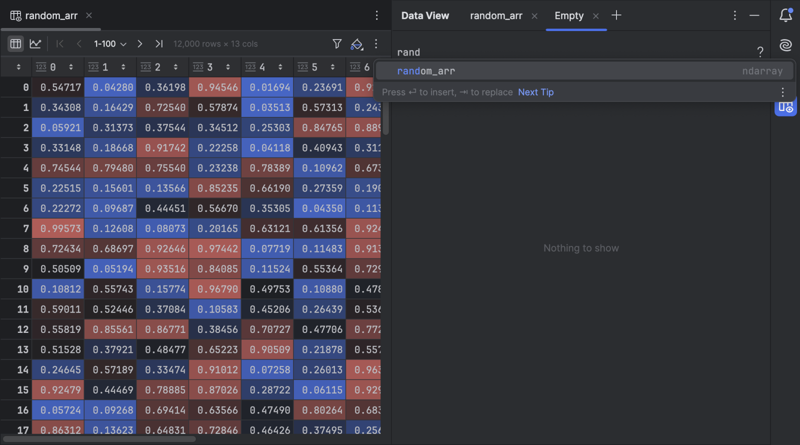 Кроме того, вы можете использовать интерактивные таблицы, чтобы фильтровать, сортировать и исследовать данные прямо в ячейке, или открывать большие наборы данных в окне Data View.