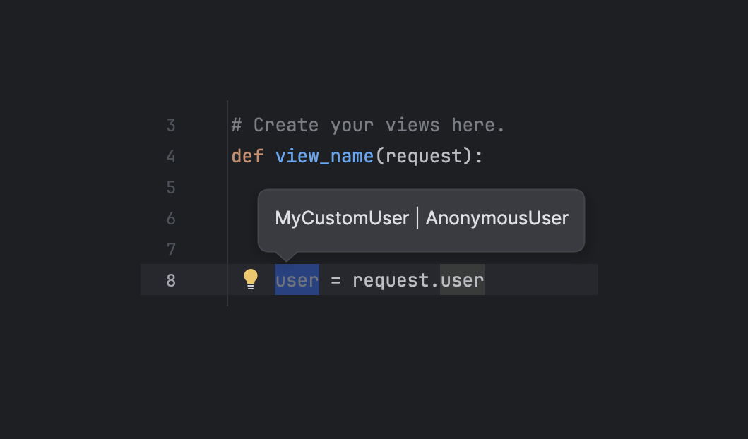 Кроме того, PyCharm теперь поддерживает Pyrefly от Meta, отображая выводимые типы Python прямо в коде по ходу ввода. Это позволяет мгновенно просматривать информацию о типе без дополнительных инспекций или подсказок.