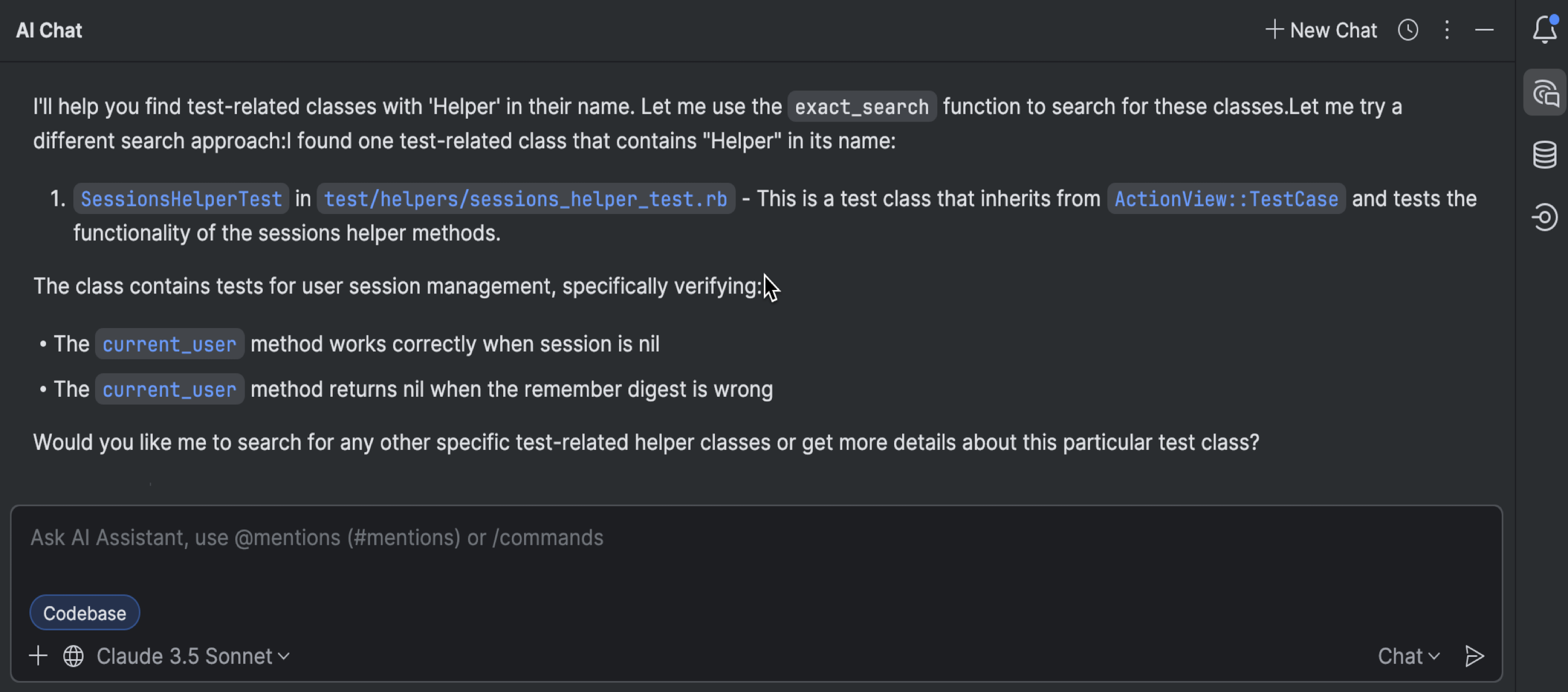 The MCP server in RubyMine now includes Rails-specific tools. It automatically recognizes Rails code and project structure, making AI-assisted code exploration in such projects faster and more reliable.
