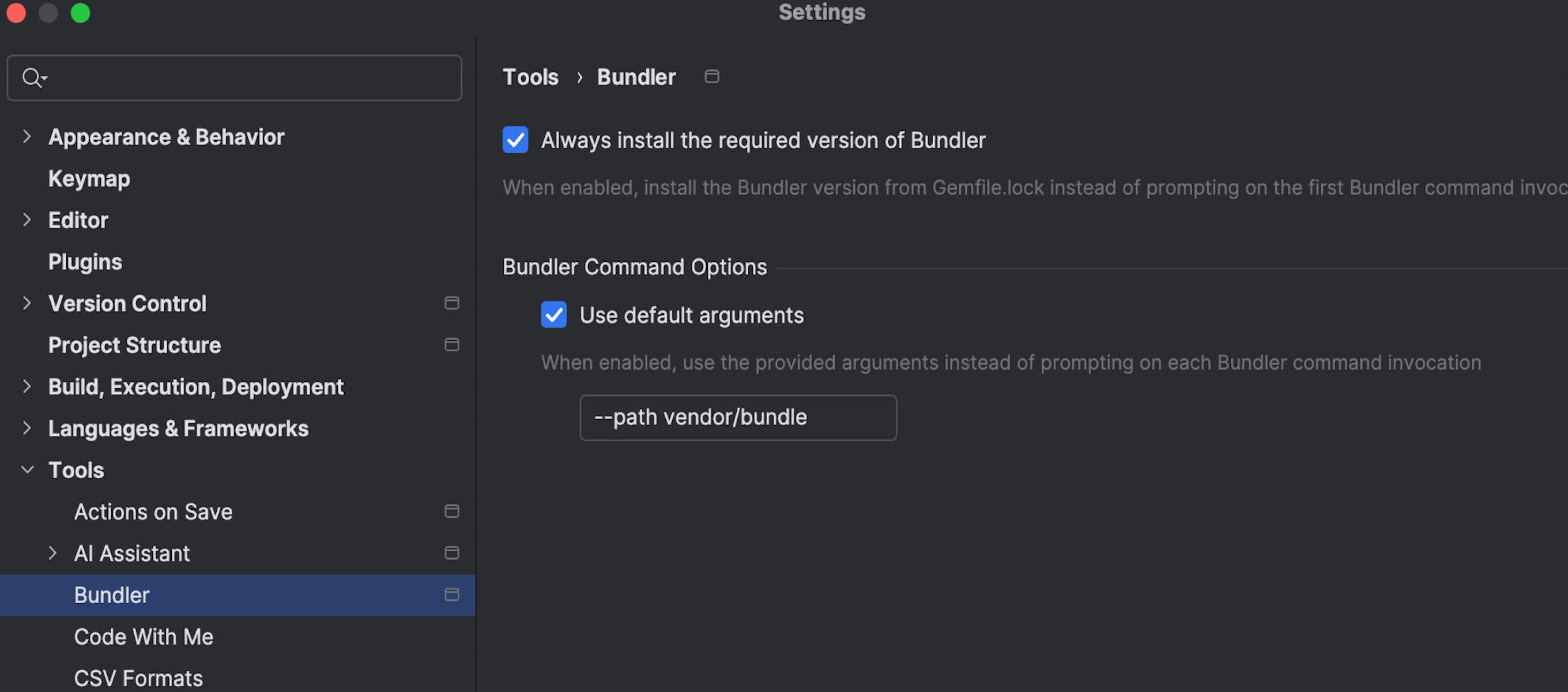 RubyMine automatically installs the required Bundler version based on your project's dependencies, making the process smoother and preventing permission errors.