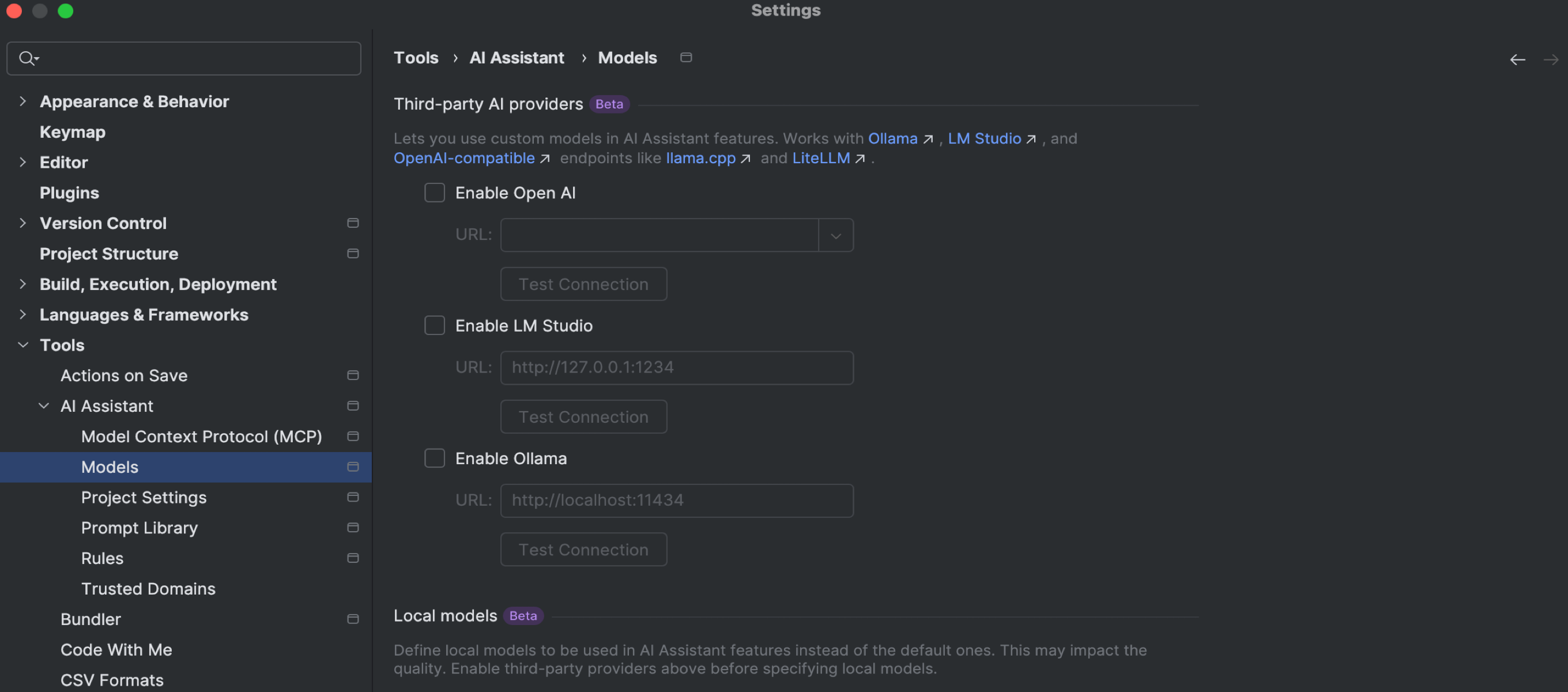 While the server comes preconfigured for AI Assistant, you can also set it up for external clients.