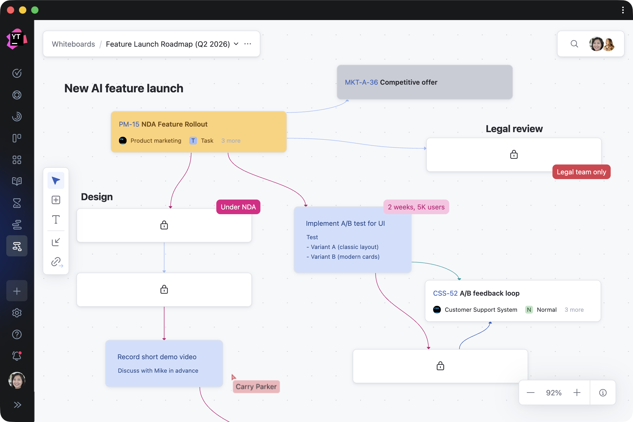 Return to any Whiteboard at any point to see how your plans have evolved. Zoom in to focus on specific areas, switch to full-screen mode for a bird’s-eye view, or use search to quickly find and navigate to relevant content.