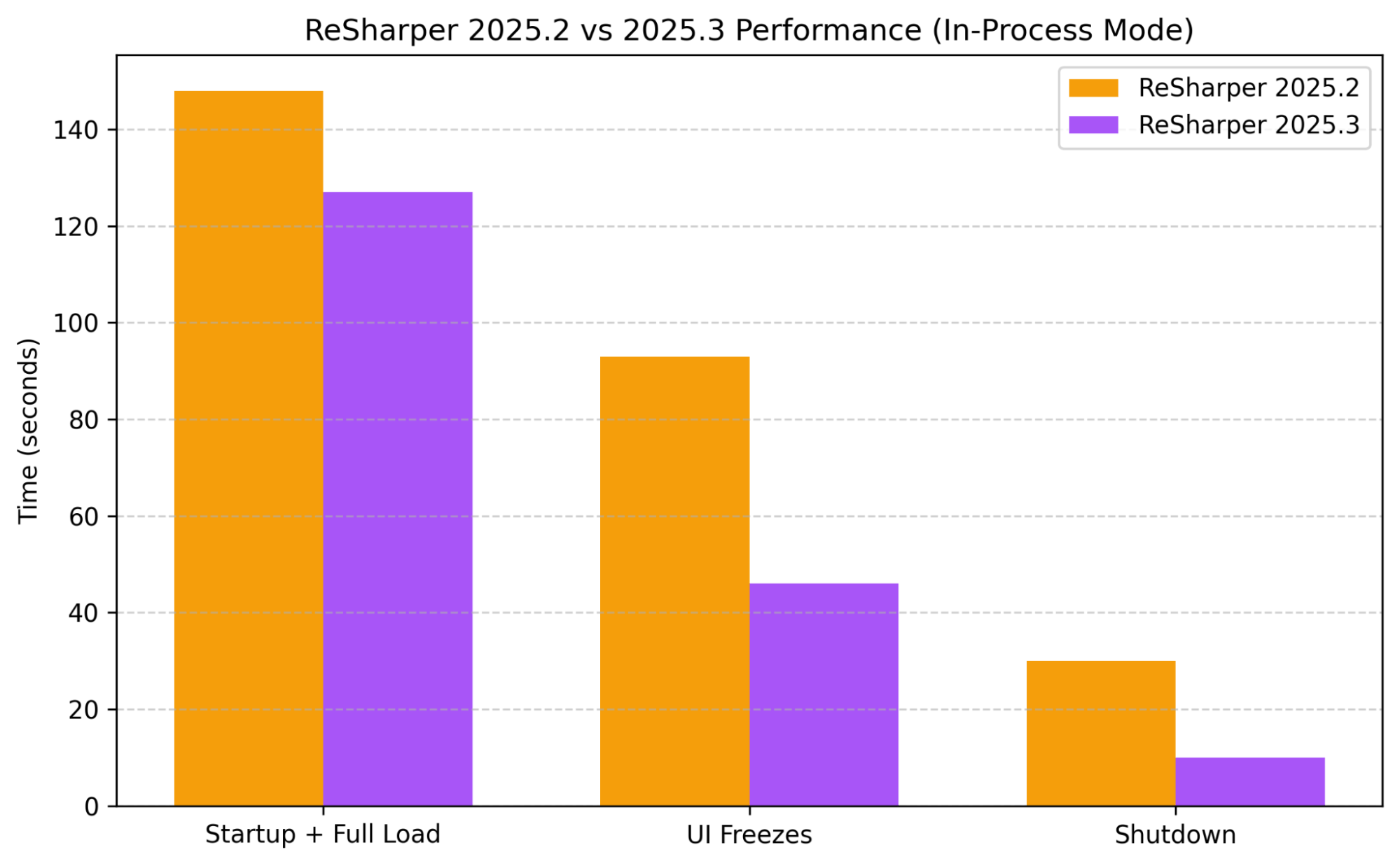 与 ReSharper 2025.2 版本相比,ReSharper 2025.3 在 In-Process(进程内)模式下实现了显著的性能提升。
