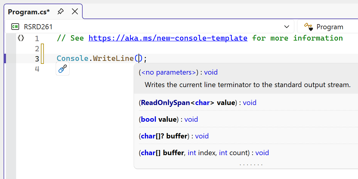 • Enhanced code completion that can generate method definitions based on [LoggerMessage] attributes.