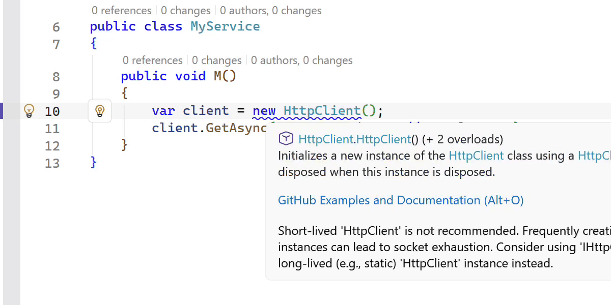 ReSharper now detects short-lived HttpClient instances and suggests safer reuse patterns. It also warns you when ImmutableArray<T> is used with collection initializers, which can lead to a runtime NullReferenceException.