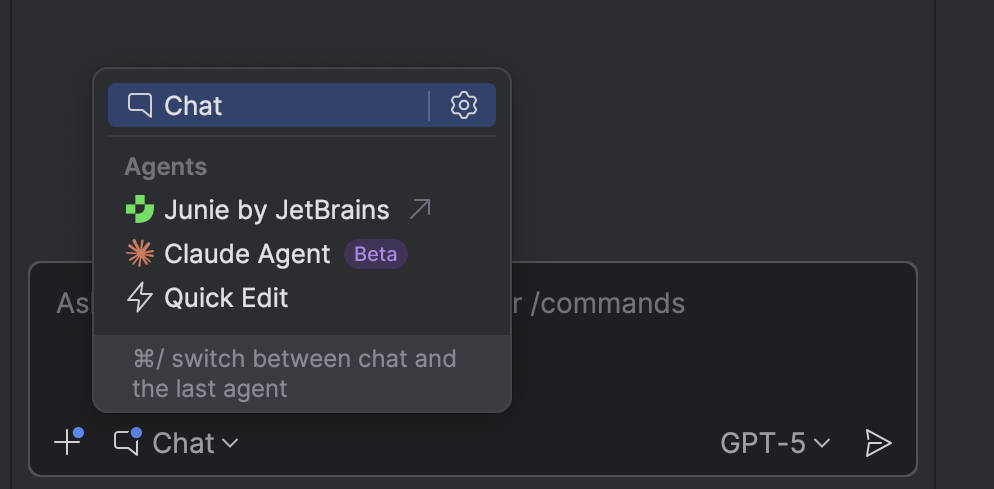 现在,开始使用任何智能体的最简便方式是直接通过 AI 聊天界面启动。 不过,如果您更倾向于以原来的方式使用 Junie,仍然可以为您提供 Junie 插件(及其部分专属功能)。