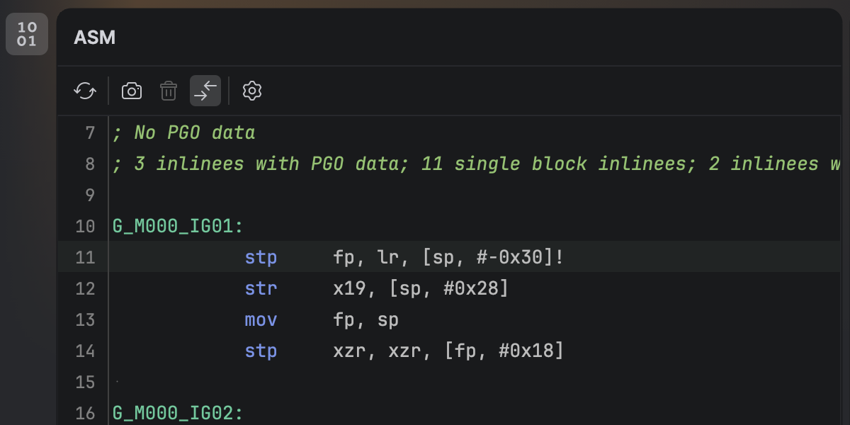 You can now view the native disassembly generated from your C# code without leaving Rider. 安装新的 .NET Disassembler 插件后,您可以在新的 ASM Viewer(ASM 查看器)工具窗口中检查 JIT、ReadyToRun 和 NativeAOT 编译器生成的输出。