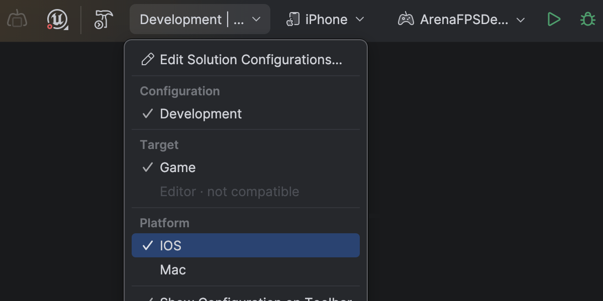 Rider 2026.1 fully supports mobile game development for Unreal Engine across both major mobile platforms. 此版本在 Rider 2025.3 引入对 Android 移动设备和 VR 设备调试支持的基础上,新增了对 iOS 移动设备和 VR 设备的支持。