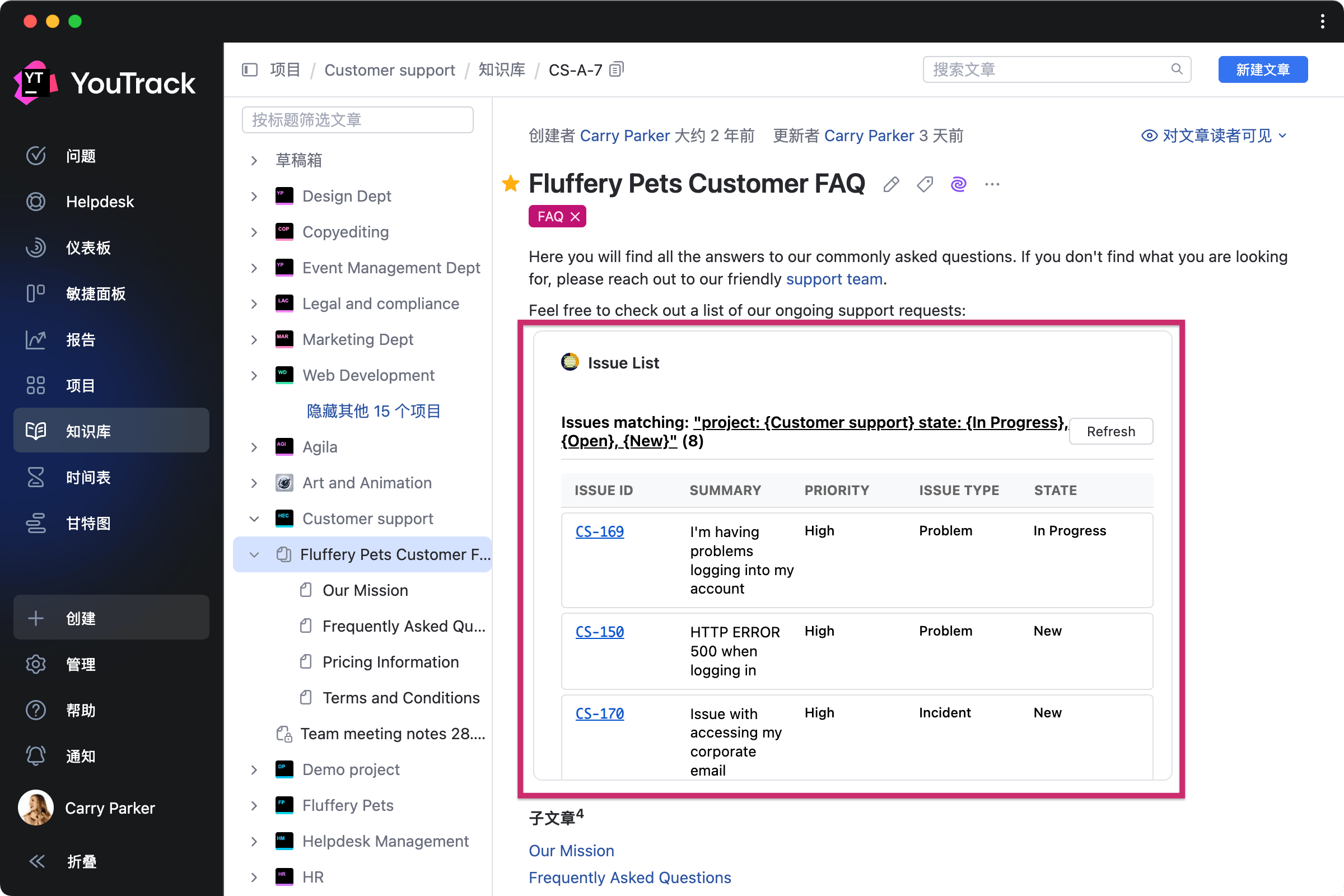 利用这些应用,您可以将 YouTrack 内容和基于 iframe 的网站嵌入任务、文章和仪表板。