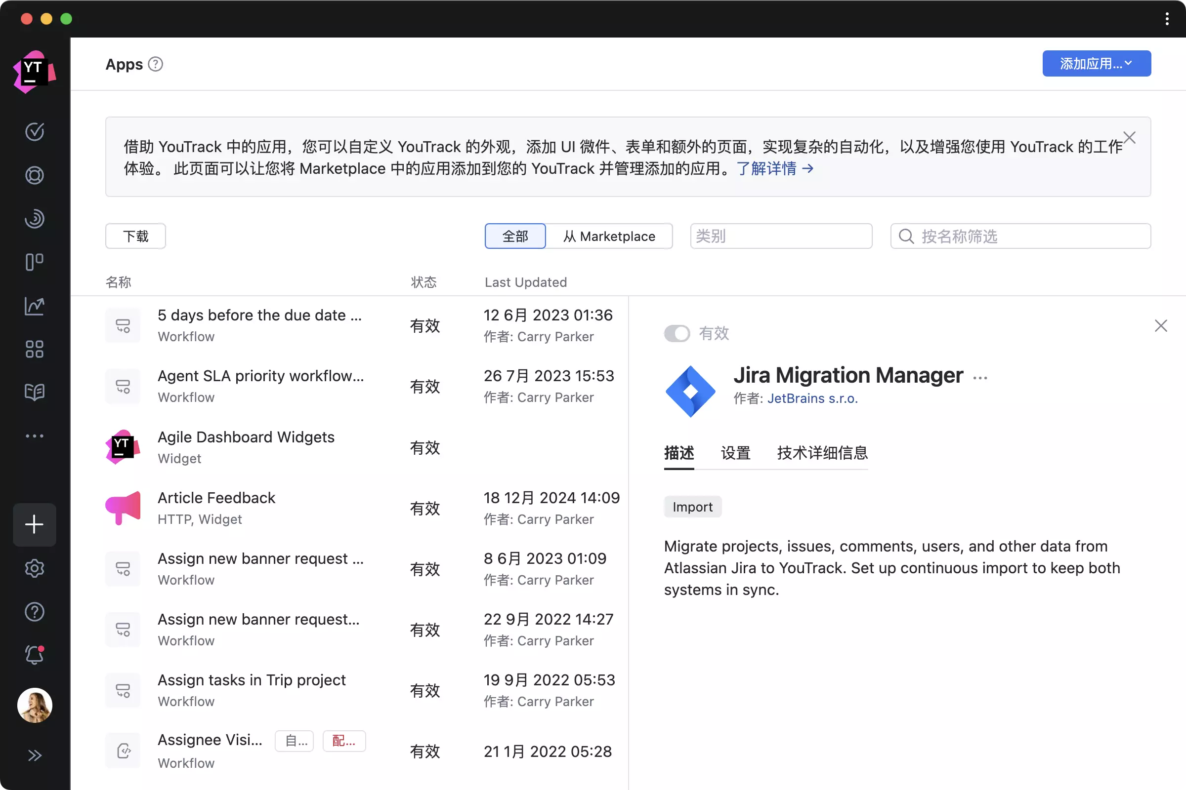使用应用扩展 YouTrack 的功能