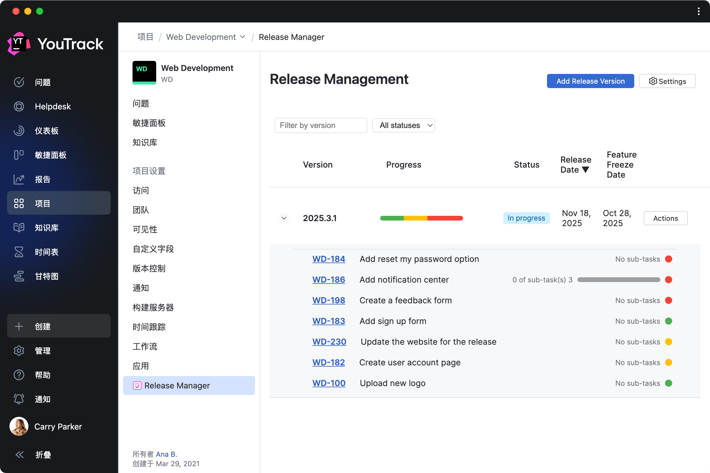 在一个页面上跟踪产品发布范围,以管理产品发布流程。